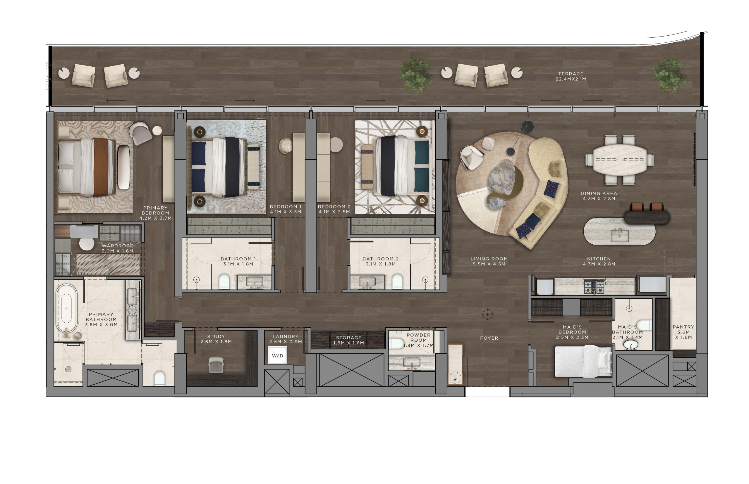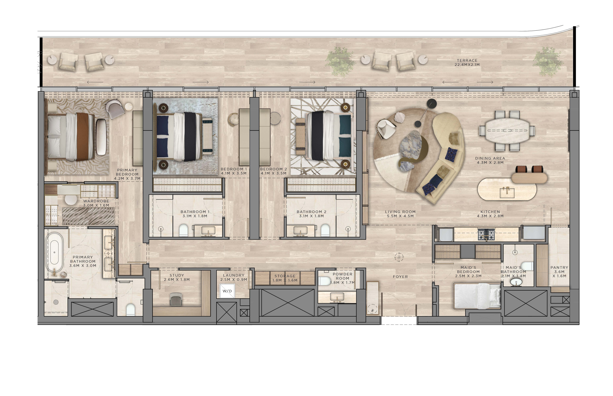 This exclusive collaboration with Mandarin Oriental, a name synonymous with luxury hospitality worldwide, introduces 228 branded residences at ease. At the heart of the Island, designed to offer unmatched opulence, sophistication, and an elevated lifestyle experience. These residences promise a unique ambiance of grace and exclusivity, combining timeless design with contemporary comforts. Residents can look forward to the iconic service standard that is celebrated for, allowing every moment at home to be steeped in luxury.